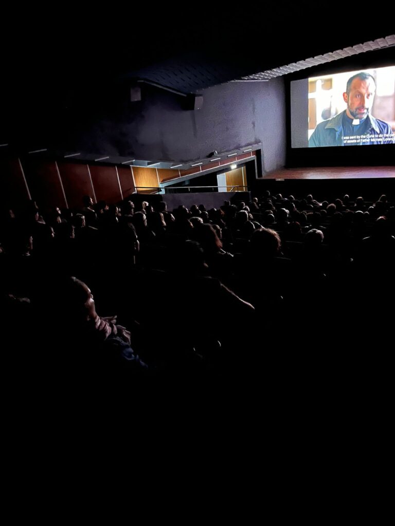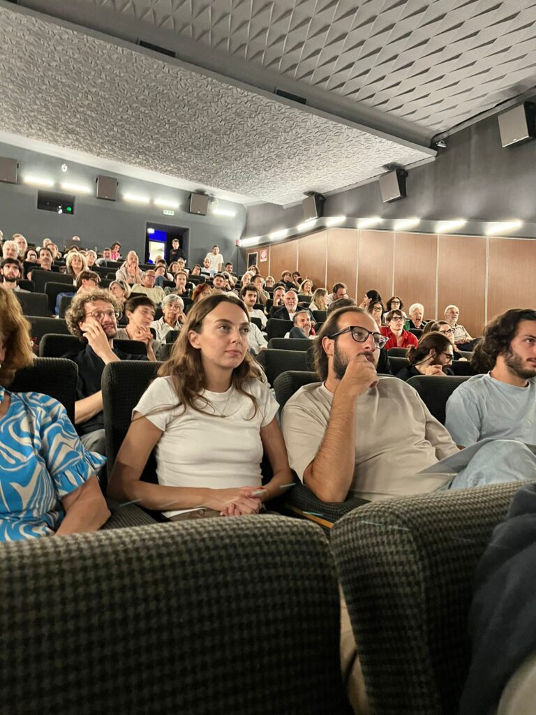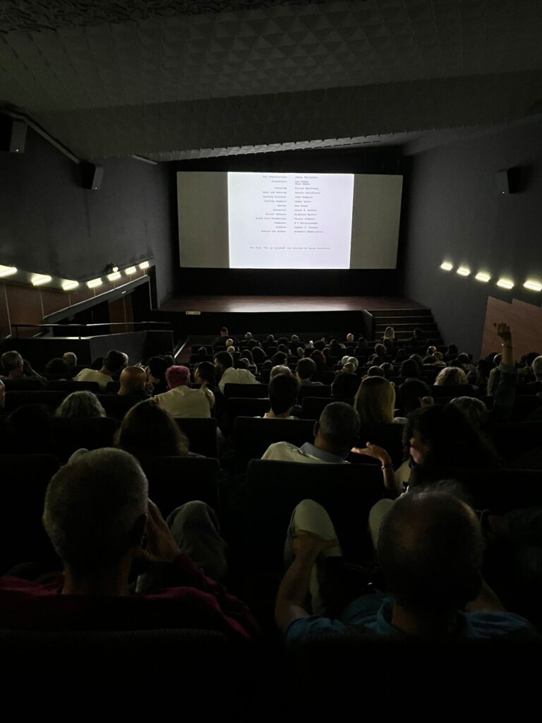 La partecipazione del pubblico è stata così numerosa che i posti a sedere erano terminati all’interno del cinema.